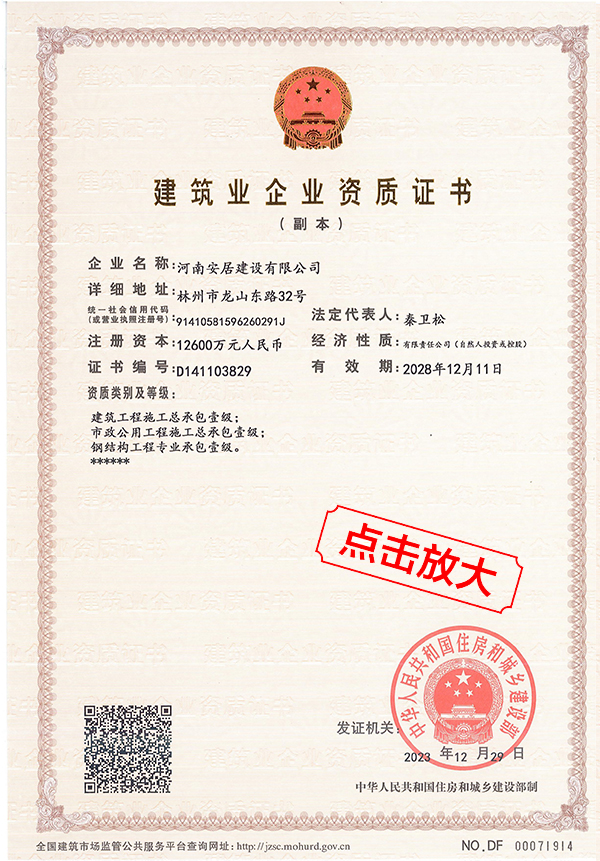 滔滔黃河哺育了中華民族拼搏向上的奮斗精神,巍巍太行造就了中原兒女的紅旗渠精神。百萬林州人下太行,鑄就了中國建筑之鄉(xiāng)響當(dāng)當(dāng)?shù)囊燮放啤:幽习簿咏ㄔO(shè)有限公司從誕生起血液里就流淌著紅色基因,秉承“安得廣夏千萬間,大庇天下寒士俱歡顏”的擔(dān)當(dāng)精神,用鋼筋混凝土筑起了高樓大廈,也用一流品質(zhì)、家國情懷打造了安居建設(shè)的輝煌成績。公司成立于2012年,注冊資金12600萬元,公司成立至今,擁有建筑,市政施工總承包等十項(xiàng)一級資質(zhì);其他二級等資質(zhì)共二十余項(xiàng)。公司秉承質(zhì)量第一,服務(wù)為主,堅(jiān)持垂直管理,從不設(shè)立分公司等分支機(jī)構(gòu)。